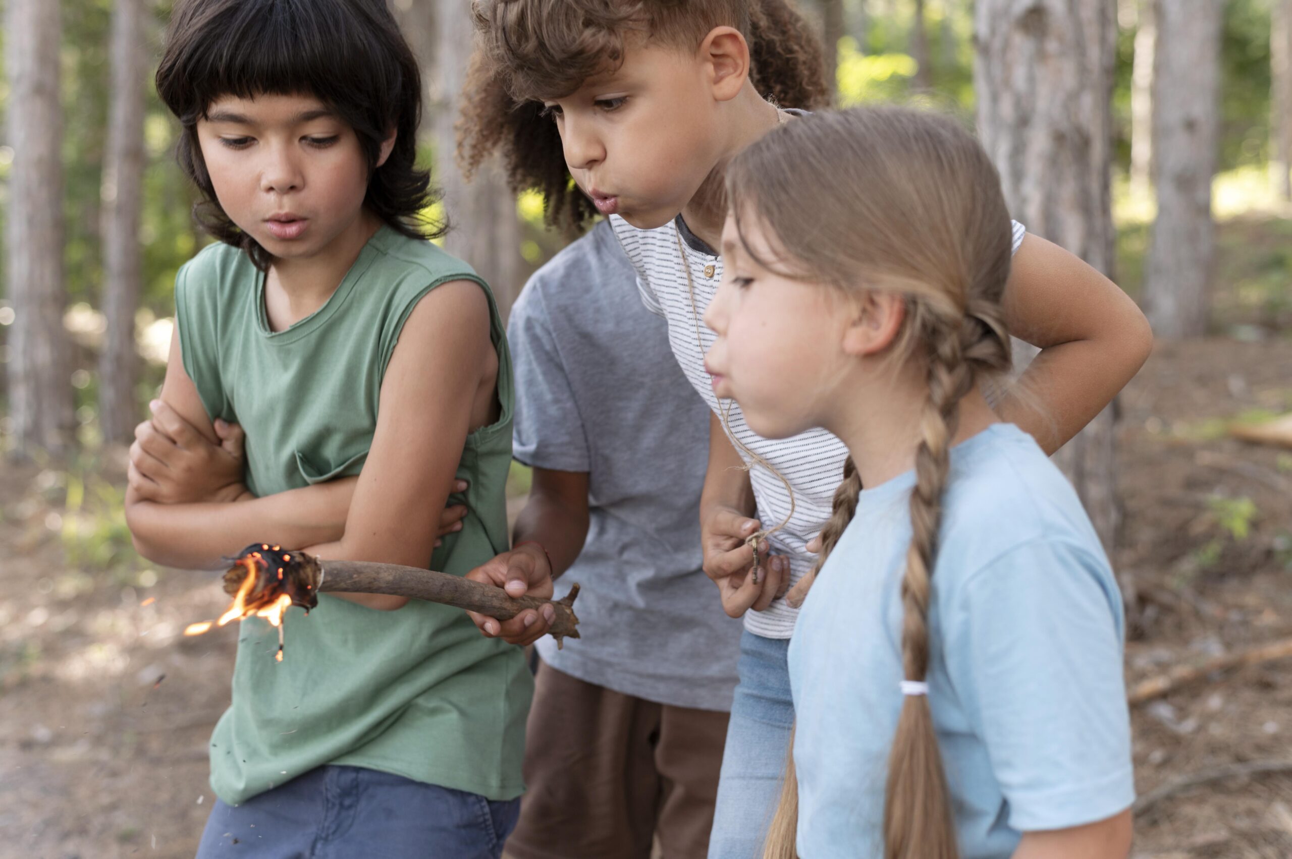 Guided by trained instructors, participants learn how to gather materials, understand fire structure, and safely ignite and maintain a small fire. Safety is always the priority, and children are taught clear boundaries and best practices from the very beginning.
