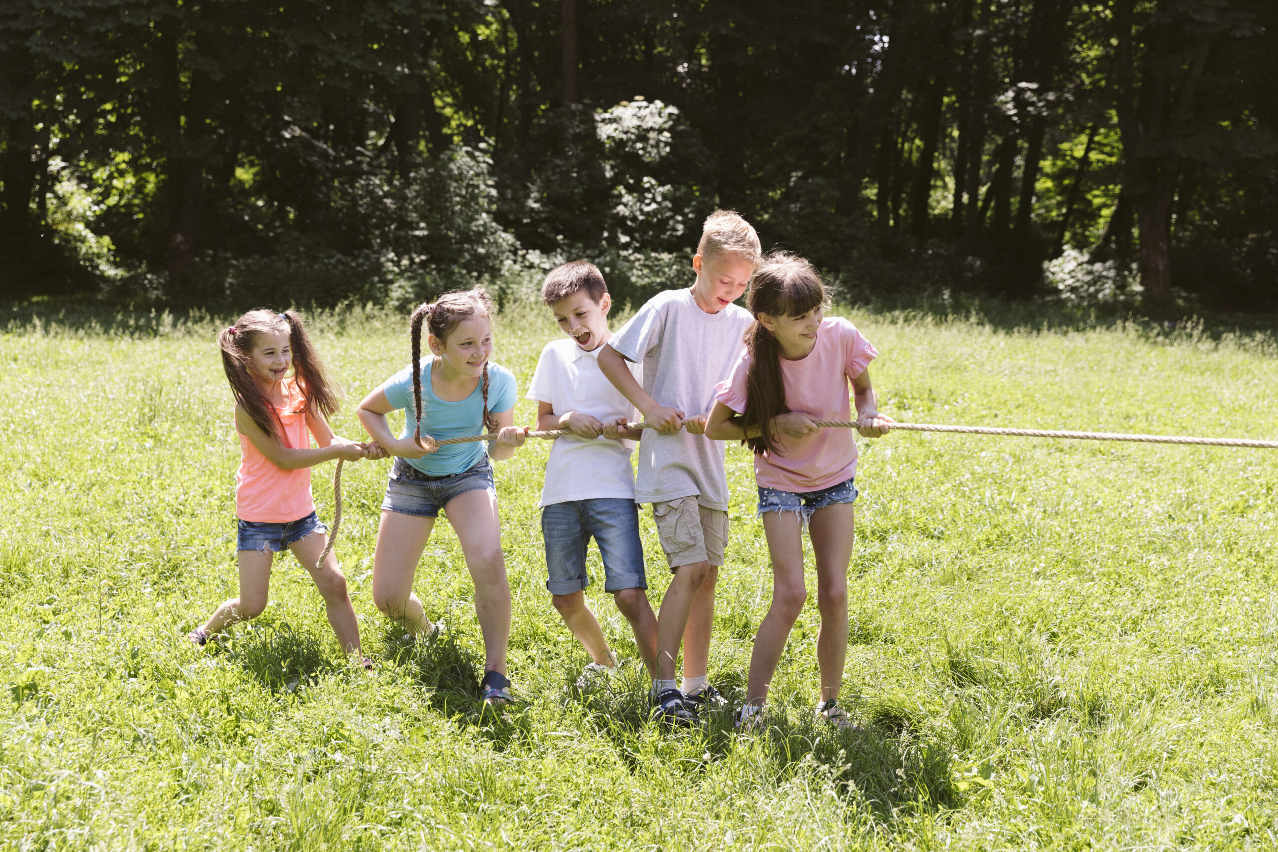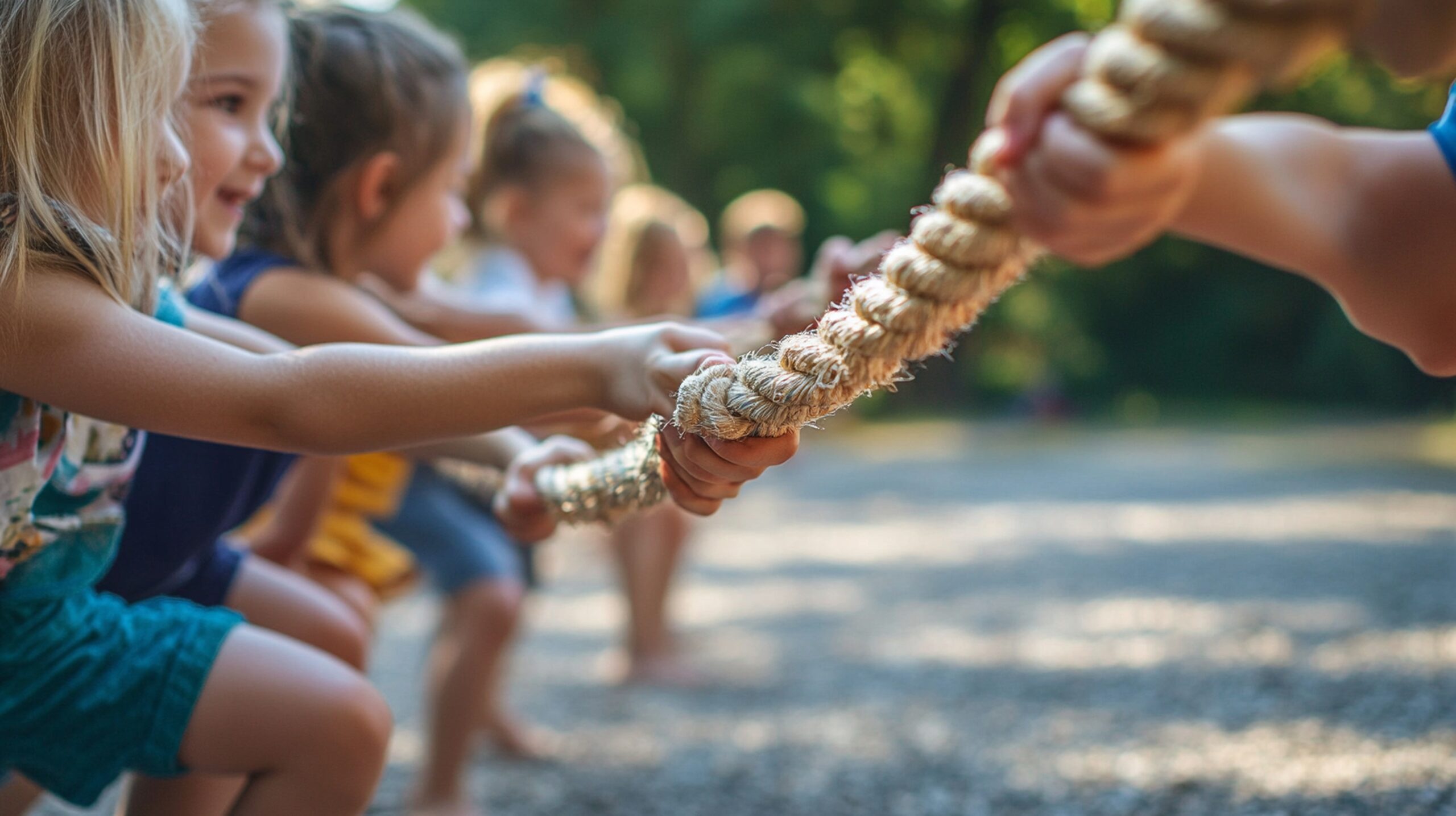 Tug of war is a high-energy, team-based activity that encourages cooperation, strength, and friendly competition. Children work together in teams, learning the importance of communication and collective effort.